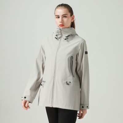 女士户外运动冲锋衣连帽轻型外套防水透气长袖拉链纯色防风伊思佳